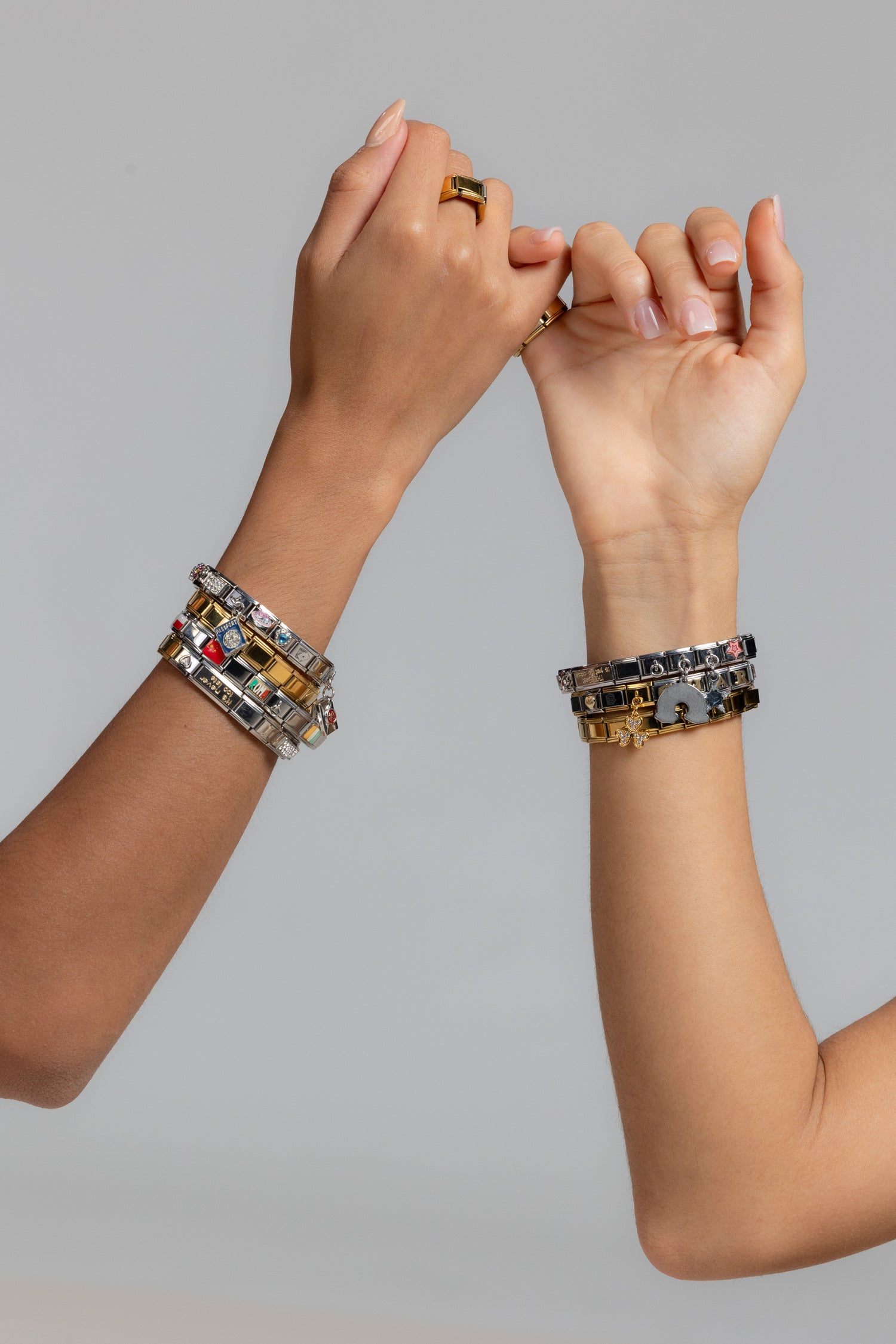 Start with a bracelet (or a watch) and add as many charms as you like — buy 10 charms and get a free bracelet.