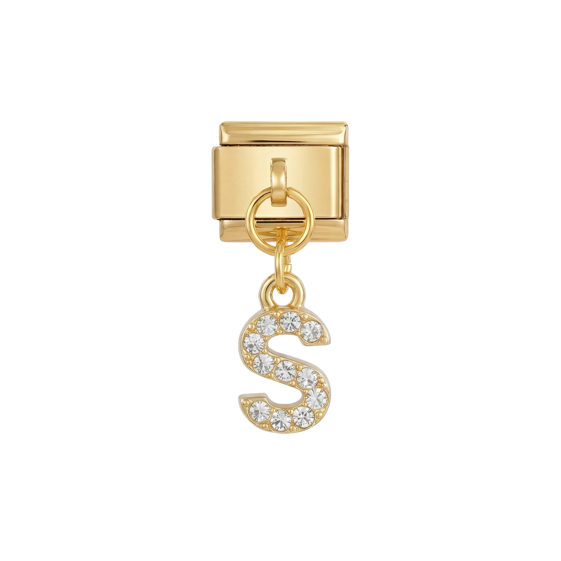 Letter S with stones, Hanging, on Gold